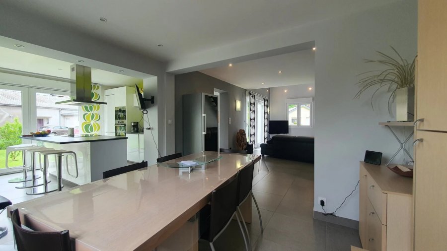 Maison contemporaine individuelle + studio indépendant sur 5 ares de jardin au bord de l'eau non loin des commodités du centre ville de Longuyon. Rez-de-chaussée: Entrée hall d'accueil vestiaire, Living salon salle à manger, cuisine américaine meublée-équipée ( ayant accès à la terrasse avec vue sur la rivière),chambre, salle de bain-douche, toilette, buanderie, placards. Au 1er: Grande mezzanine (ayant accès à une terrasse à l'abri du vent) actuellement salon de lecture et pouvant être transformée en chambre à coucher, une autre chambre avec dressing, coin bureau. - Au rez-de-jardin: Studio indépendant meublé-équipé. Living cuisine salle de bain douche. - Au rez-de-jardin: Garage fermé, place de parking. Renseignements et visite: Tél: Fr +33/ 06 43 10 12 31 Lux: +352/ 691 444 744